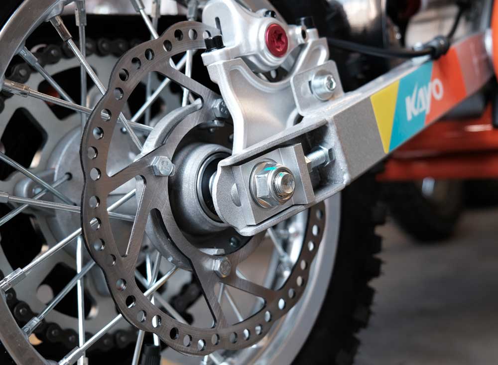Suitable for kids aged 6 to 9 years, powered by a tame 4-stroke engine that is fully automatic, makes it easy on the little kids just getting started on their dirt bike journey. An electric starter makes bringing the little engine to life a breeze. Disc brakes, front and back, light weight and a seat height of just 22 inches makes maneuvering this little bike easy.